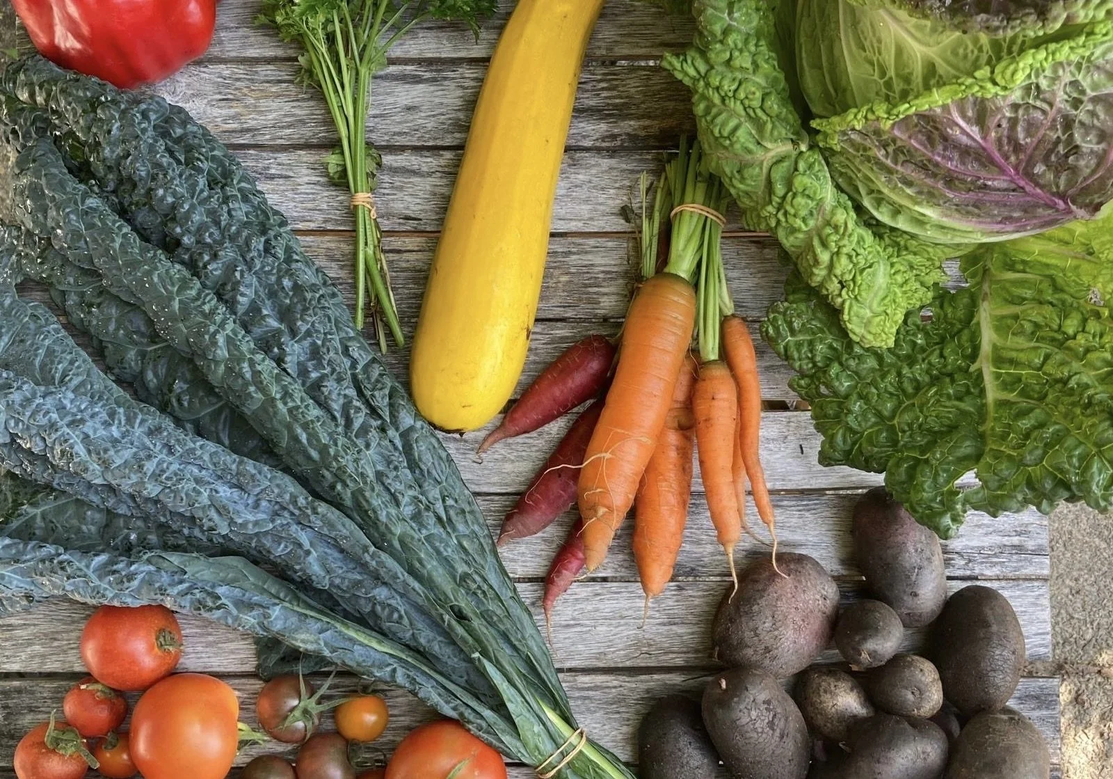 We lopen door de moestuin, een rondleiding met uitleg over regeneratieve landbouw en het oogsten van de groenten en kruiden staat op het programma. Samen handen uit de mouwen, meer field to fork dan dit wordt het niet.